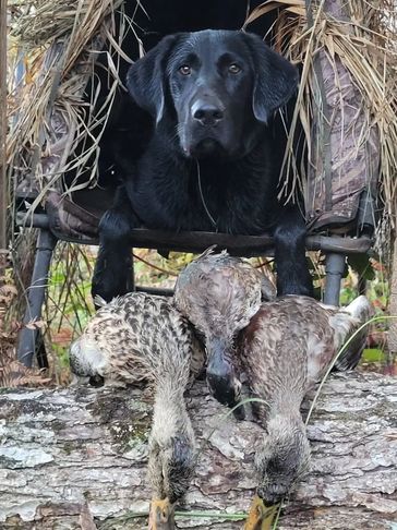 Ridge is our young, full tilt black male that is an up and comer to our breeding program. He comes from a long lineage of working dogs and shows great potential to be one himself. Ridge passed his WC at 10 months old and will be working towards more achievements In 2026. He will join the program upon completion of his health testing and t